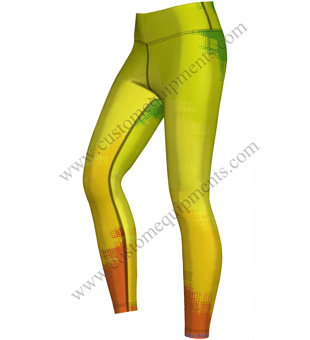 Yellow Leggings made of lycra with sublimation design. ( 260 GSM to 280 GSM ) Powerful LYCRA® for e.....